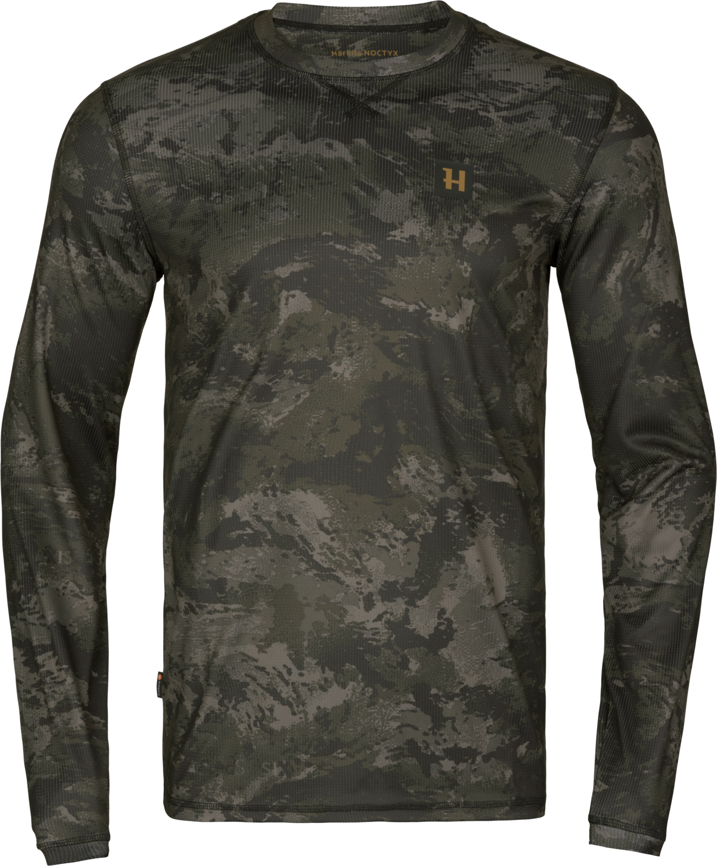 Introducing the Härkila NOCTYX camo T-shirt: a must-have base layer for warm weather hunts. Its AXIS MSP® Black pattern, low-noise fleece, stretchable fabric and odor control delivers ultimate concealment and comfort.